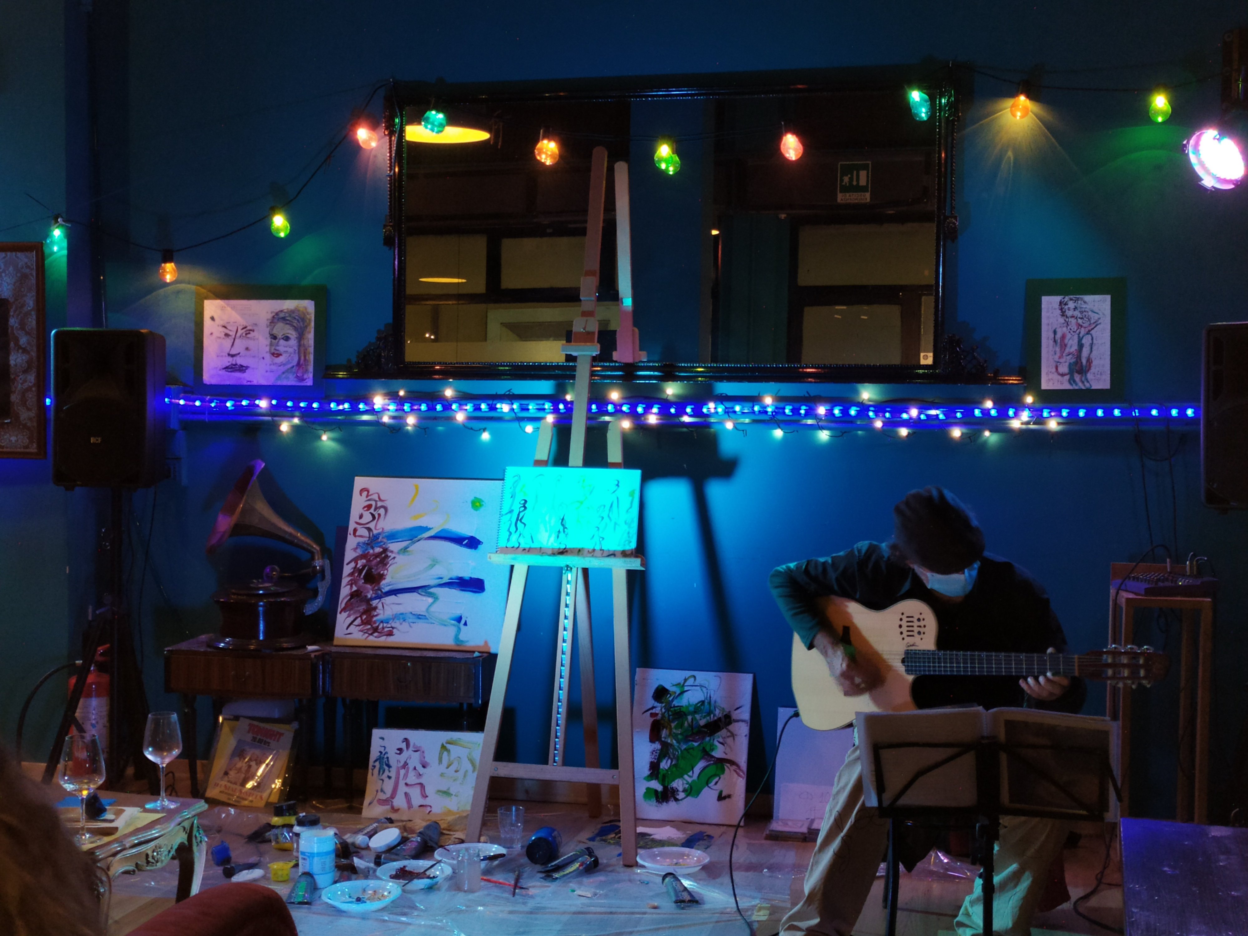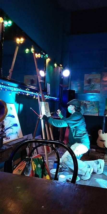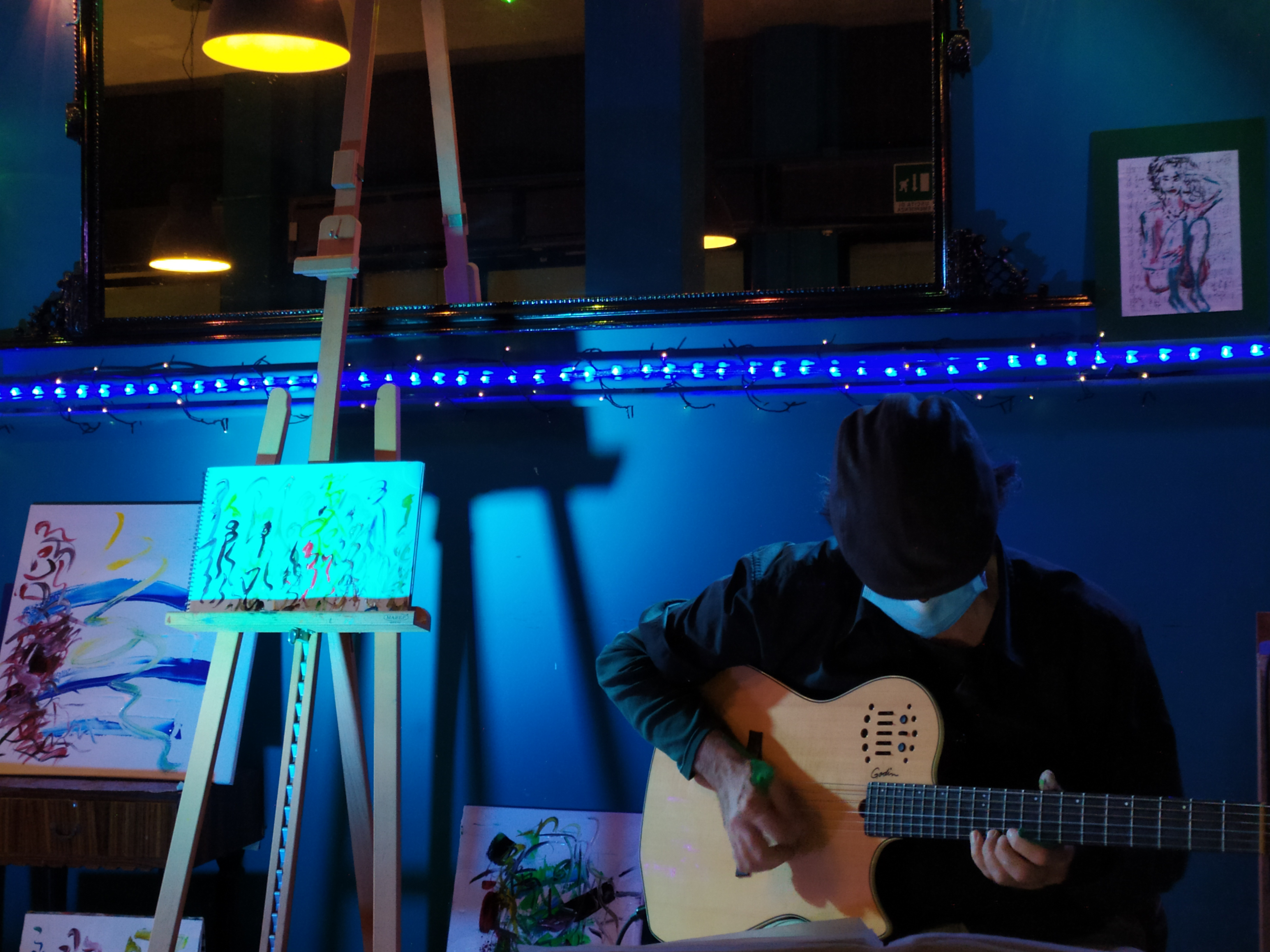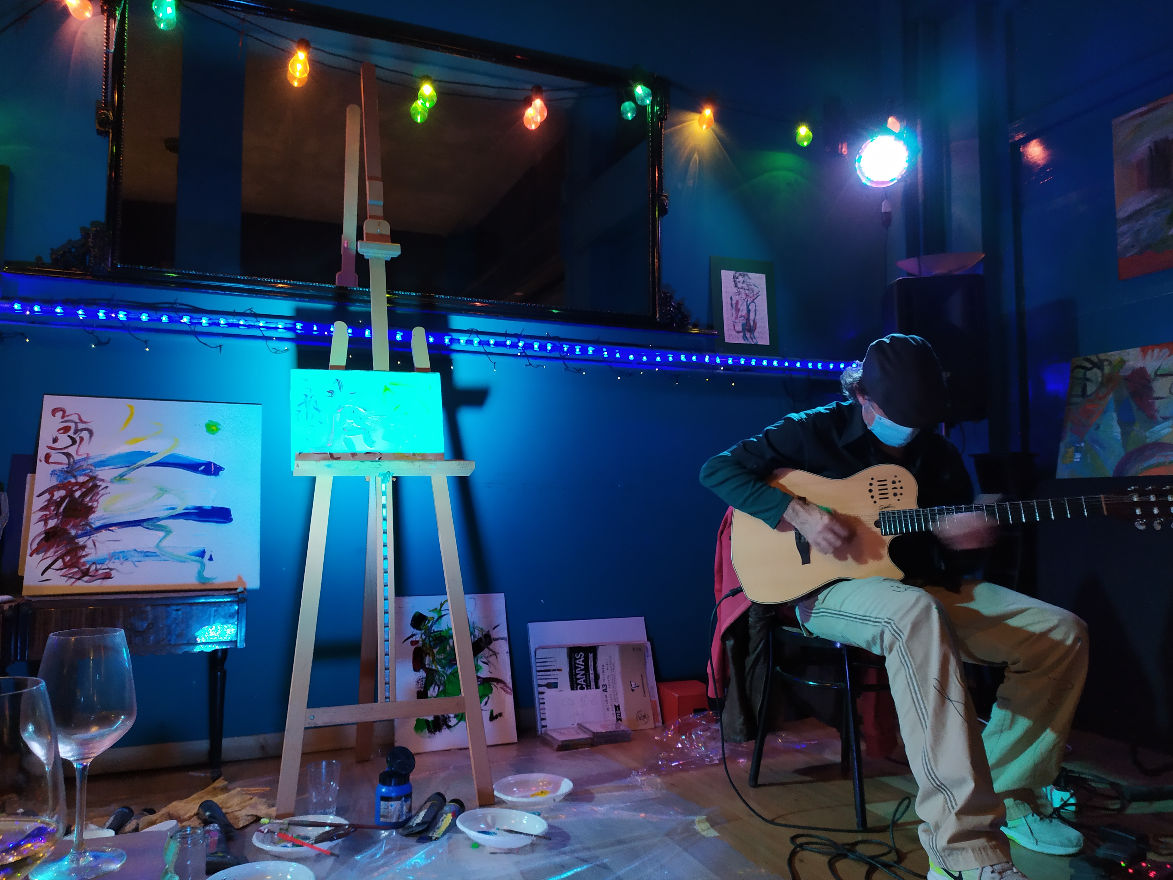 ” questo tipo di performance nasce da una mia idea originale (nessun’altro artista esegue sia la parte musicale che quella pittorica); performance che ho gia’ realizzato alla Casa della Cultura del Comune di Roma (Villa De santis), alla Casina delle Civette (Musei di Villa Torlonia) per due anni di seguito per l’AGIMUS, a Parigi presso il Troisieme, nel Marais, e al ”Moggio” del Quadraro (Roma), in luglio 2019 alla Brick lane Gallery di Londra.”