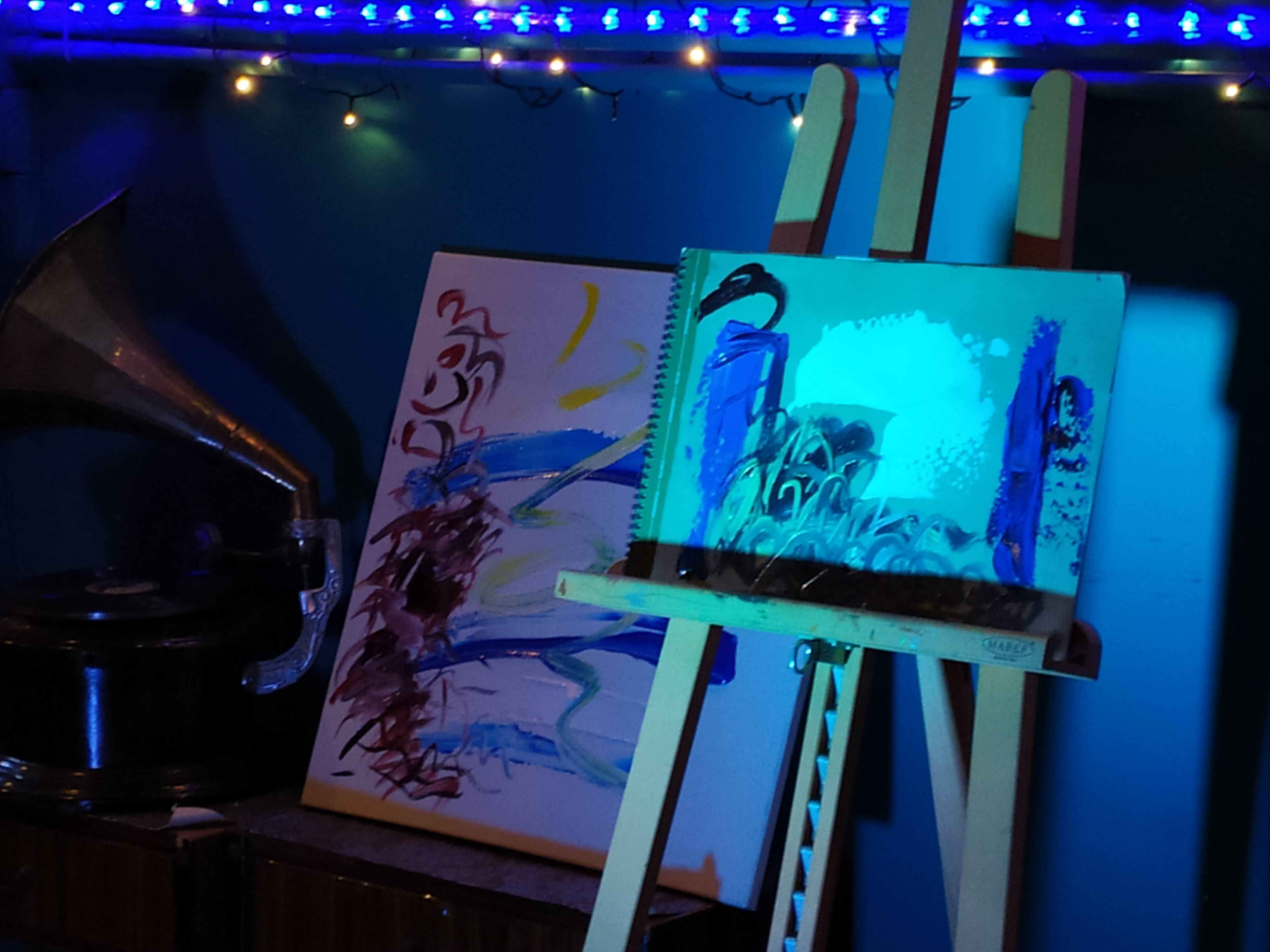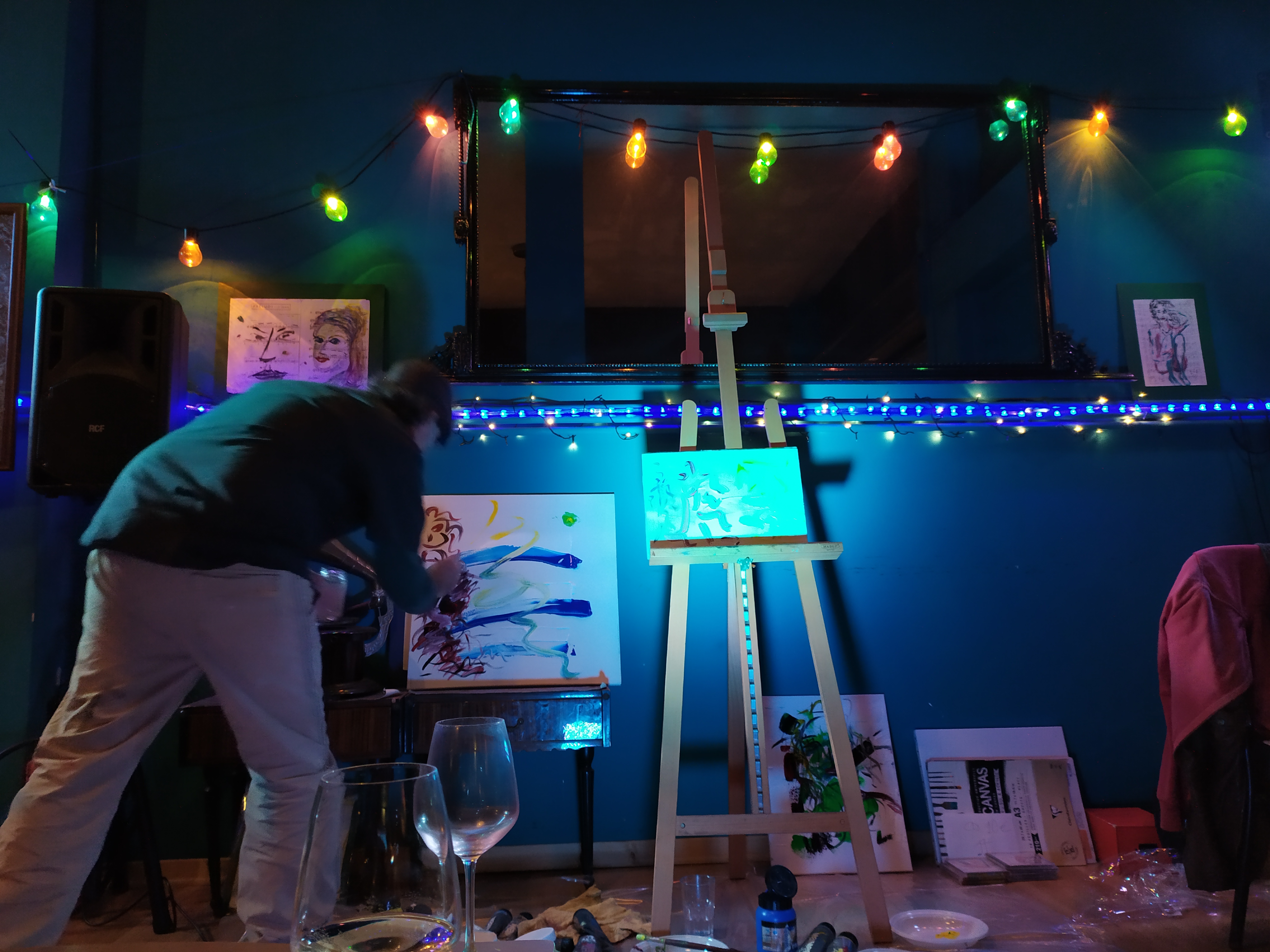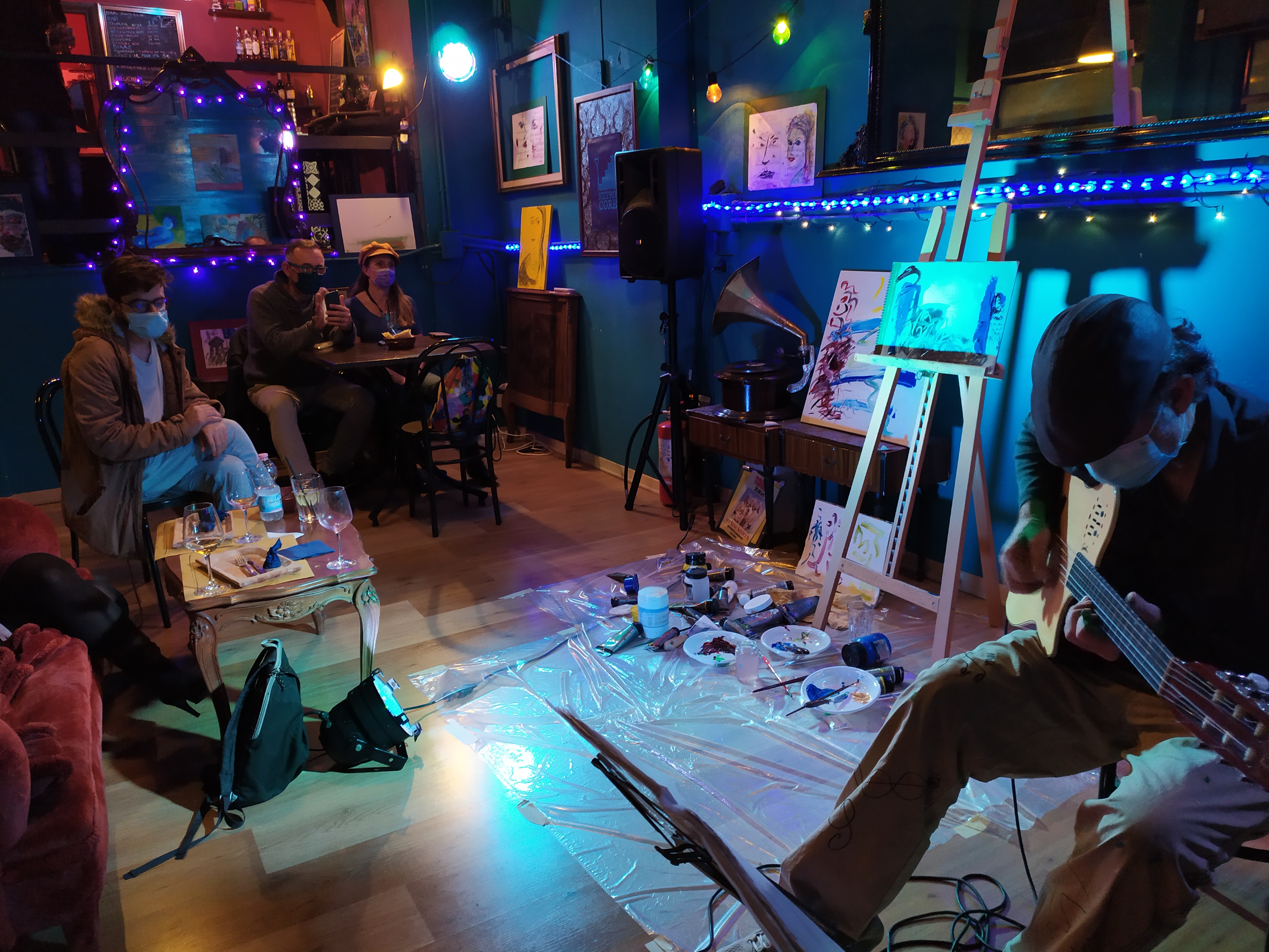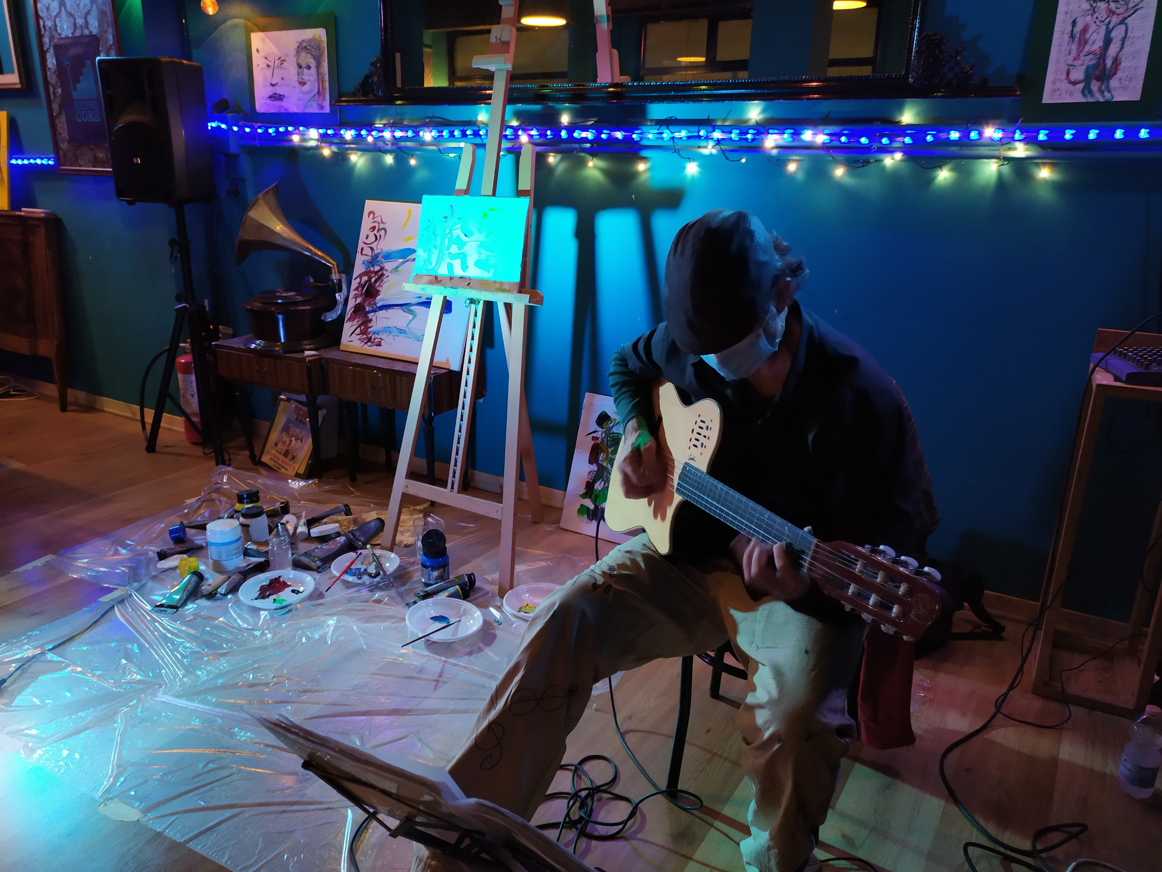 ” questo tipo di performance nasce da una mia idea originale (nessun’altro artista esegue sia la parte musicale che quella pittorica); performance che ho gia’ realizzato alla Casa della Cultura del Comune di Roma (Villa De santis), alla Casina delle Civette (Musei di Villa Torlonia) per due anni di seguito per l’AGIMUS, a Parigi presso il Troisieme, nel Marais, e al ”Moggio” del Quadraro (Roma), in luglio 2019 alla Brick lane Gallery di Londra.”