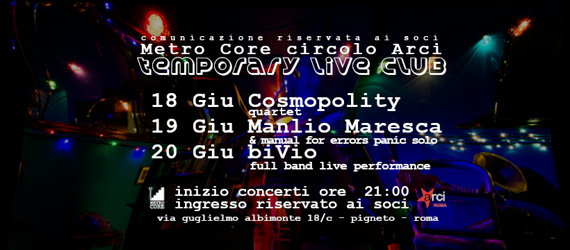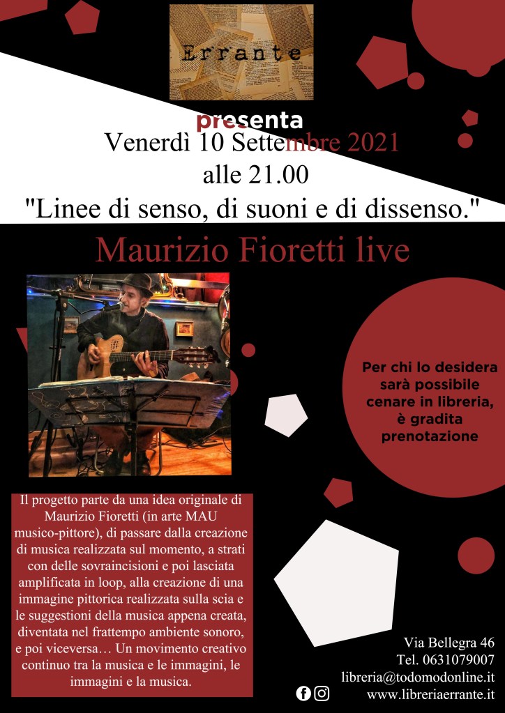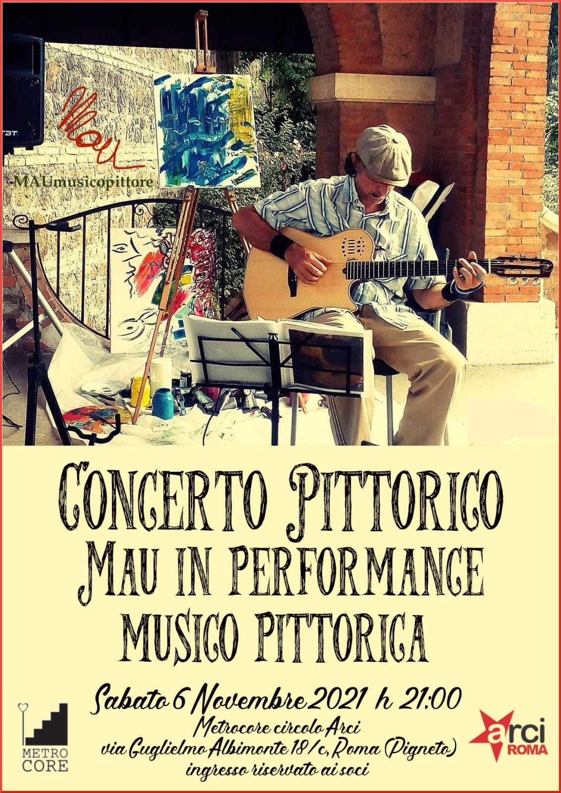 Data del evento: SABATO 24 ottobre 2020 Location: a cura del Metro Core, circolo ARCI di Roma (Pigneto) ‘il suono della Linea, la Forma ed il Colore della Musica ” Il progetto parte da una idea originale di Maurizio Fioretti (in arte MAU musico-pittore), di passare dalla creazione di musica realizzata sul momento, a strati…