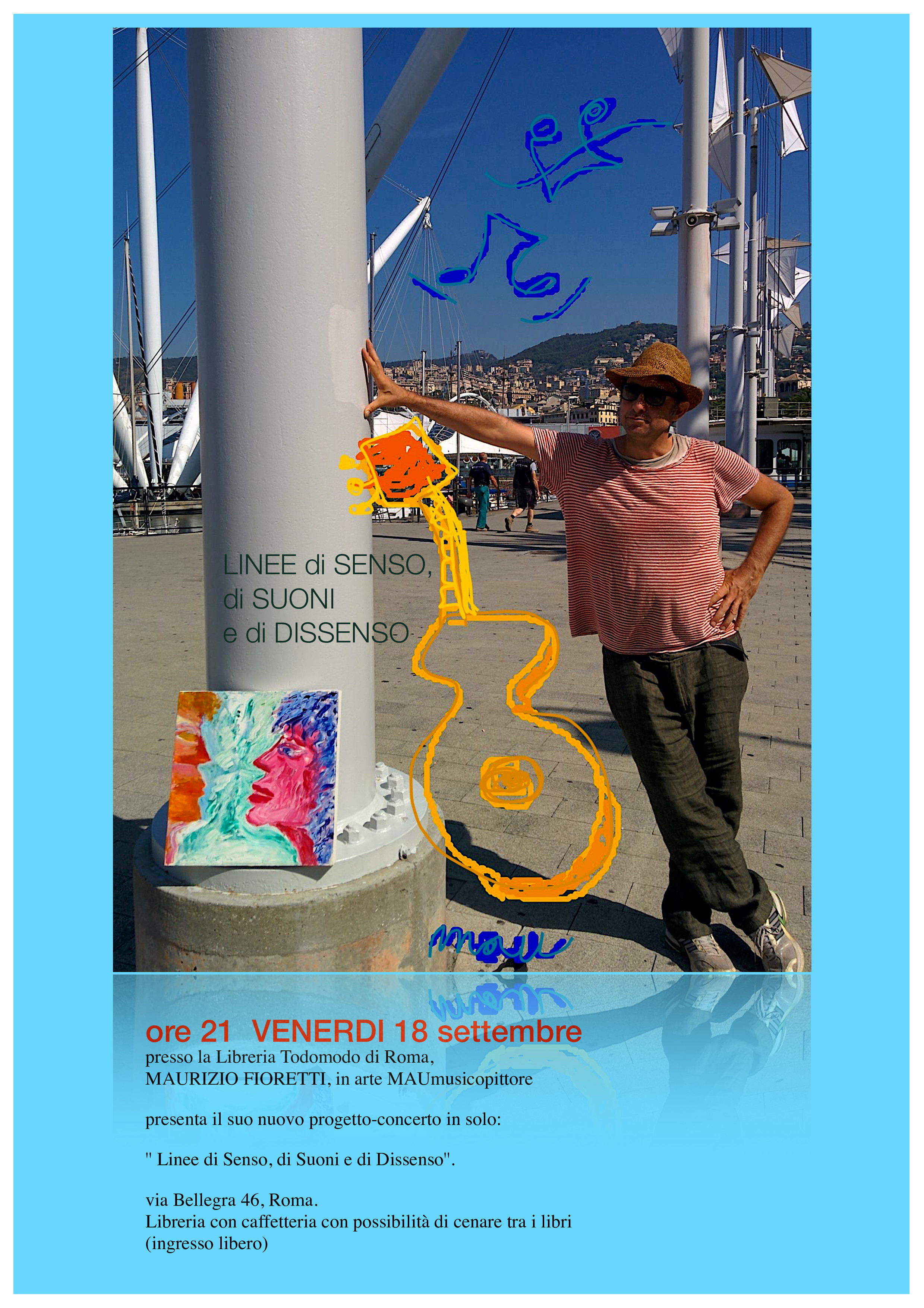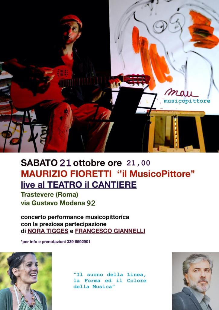 CONCERTO PITTORICO: alla ricerca del Suono della Linea ed il Colore della Musica. Il progetto parte da una idea originale di Maurizio Fioretti (in arte MAU musico-pittore), di passare dalla creazione di musica realizzata sul momento, a strati con delle sovraincisioni, e poi lasciata amplificata in loop, alla creazione di una immagine pittorica, realizzata sulla…