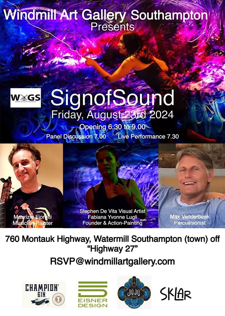 Visual Artist and Action Painter Fabiana Yvonne Lugli will be performing live “SignofSound” in the Hamptons at “Windmill Art Gallery Southampton” with artists:
