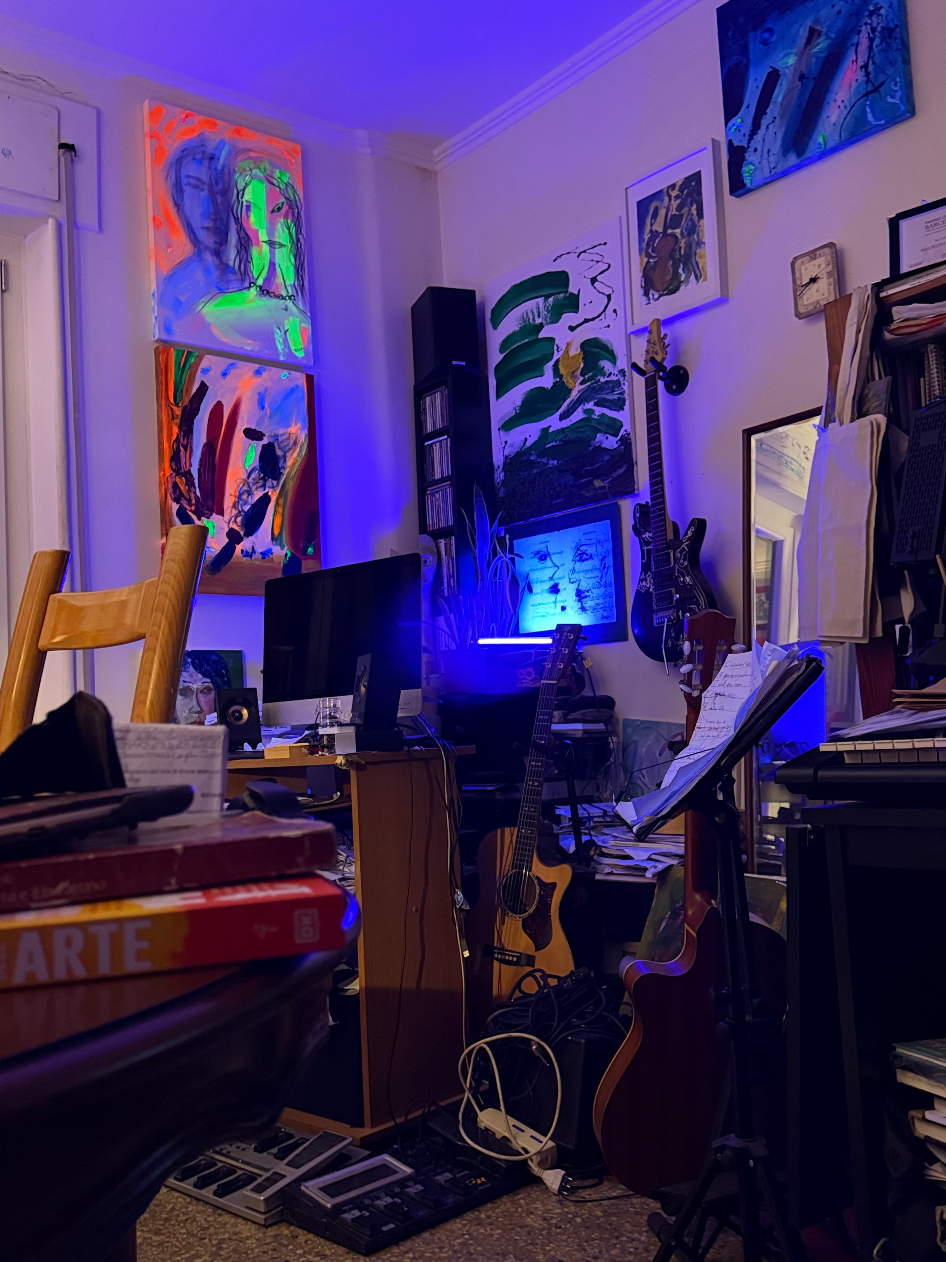'' un musicista, un pittore, un poeta di immagini? sono tre dimensioni che coinvivono nei suoi quadri in cui il colore campisce lo spazio definendo superfici diverse per intensita' e spessore.