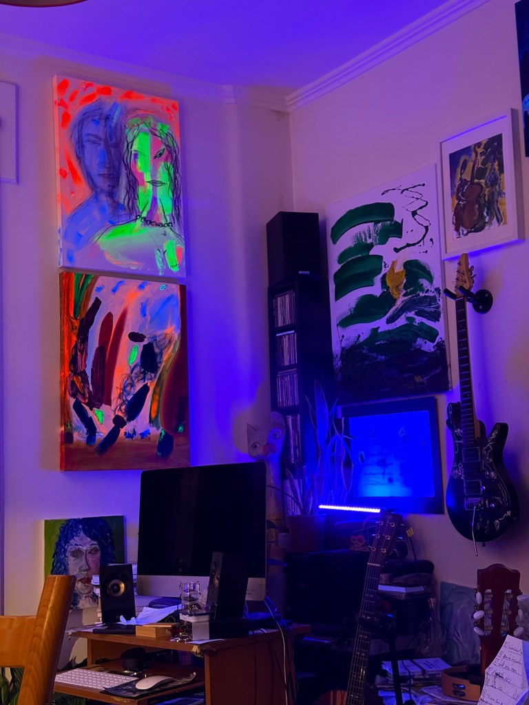 '' un musicista, un pittore, un poeta di immagini? sono tre dimensioni che coinvivono nei suoi quadri in cui il colore campisce lo spazio definendo superfici diverse per intensita' e spessore.