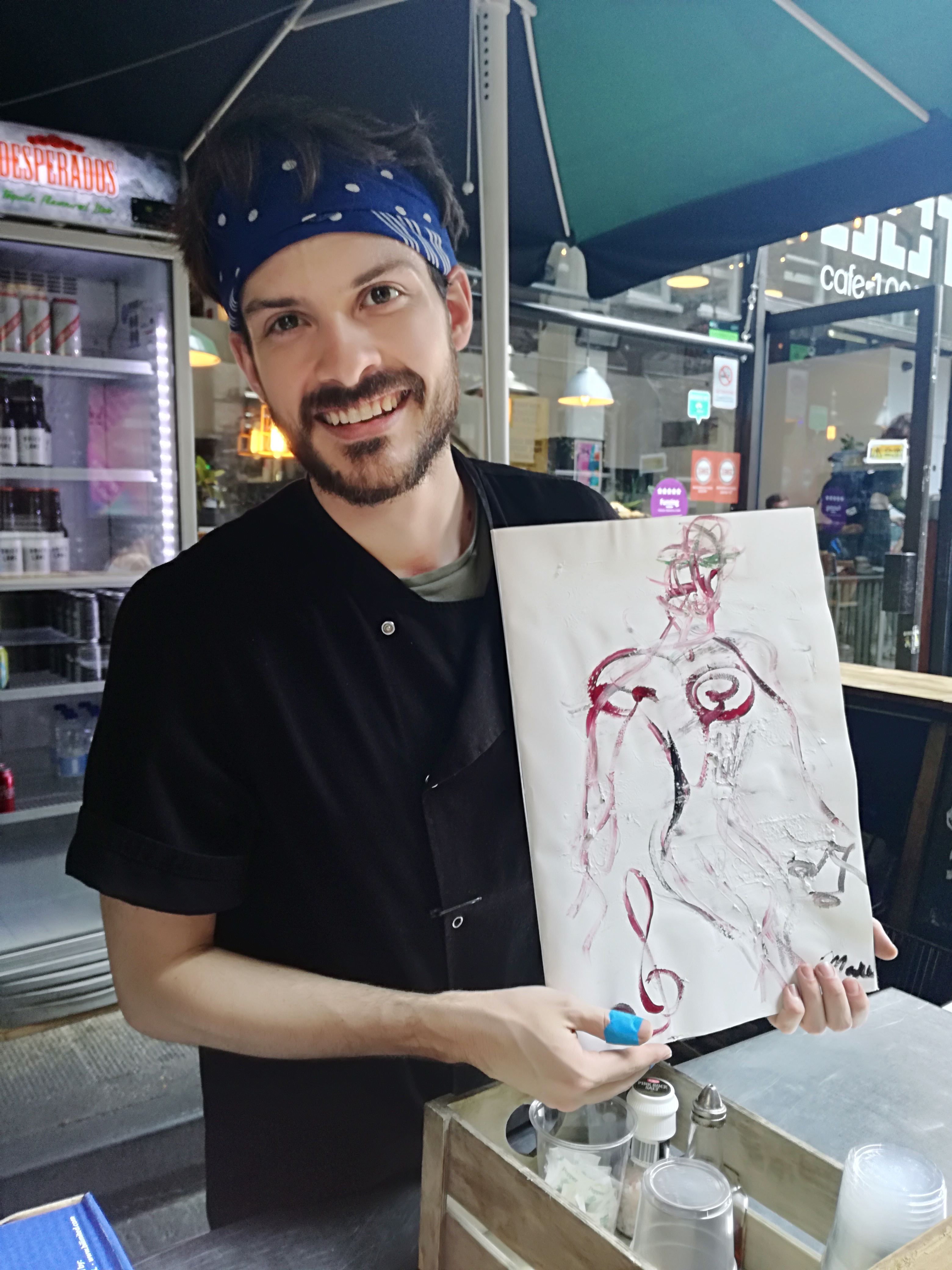realizzato nella performance nella Brick Lane Gallery, agosto 2018, LONDRA